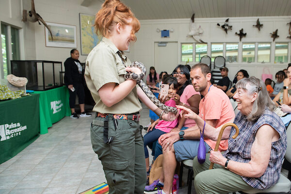 You don’t need to be Dr. Dolittle to speak to the animals! Meet the nature center’s live animals including reptiles, amphibians, and birds of prey! Interacting with animals can boost your mood and promote mental wellness. Learn more about them and their natural habitats. Our animal friends look forward to greeting you.